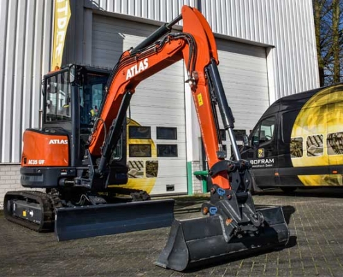 De Atlas graafmachine AC 35UF is ideaal voor werkzaamheden op diverse werklocaties zoals op landbouwgrond, tuinen, voor gemeentelijke engineering en onderhoud van wegen. De graafmachine beheerst over een uiterst precieze bediening en is een compacte binnendraaier die gemakkelijk rond zwenkt bij een obstakel. Hierdoor is het ook mogelijk om in krappe ruimtes werkzaamheden te verrichten.